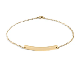 A stunning piece that seamlessly transitions from a chic bracelet to a stylish anklet. This bracelet features a cable chain with a curved blank bar for personal customization and a lobster-claw clasp to ensure a secure fit and carefree wear. The sleek, curved bar adds a touch of modern sophistication to the piece, while its minimalist design ensures it complements any outfit. It's the perfect way to make a statement, whether you create a sentimental keepsake or gift as a promise of friendship to a special friend. So don't miss out - grab this fun, casual accessory today!