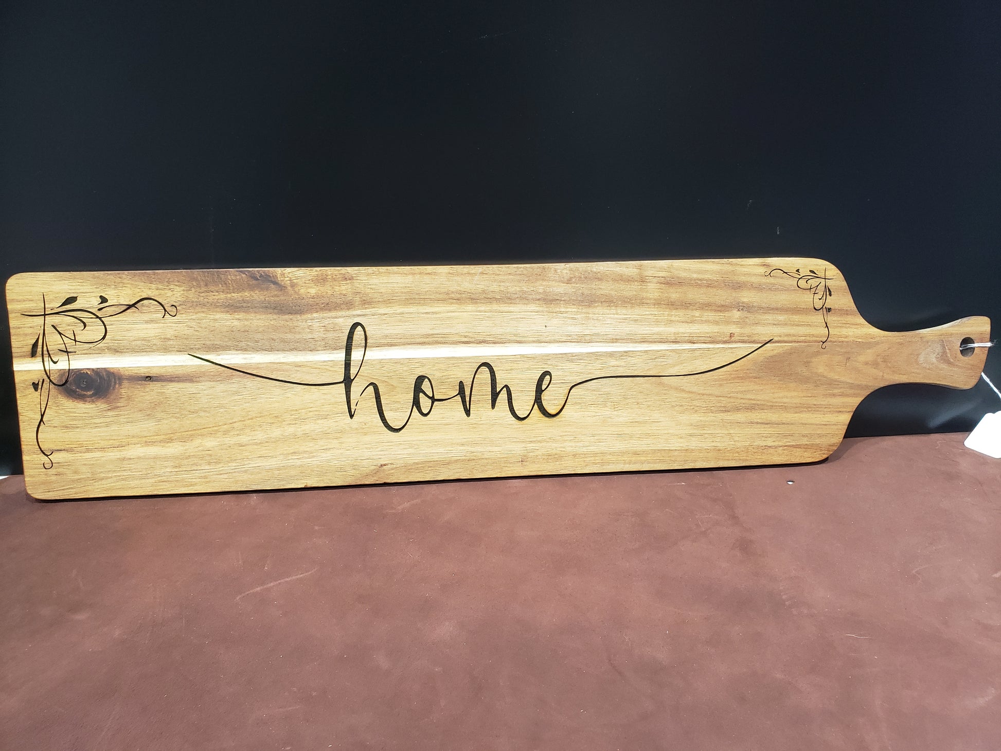 Beautiful charcuterie board for any kitchen. 27" x 6" x .5" Laser engraved