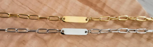 Color: Choose silver (stainless steel color) gold, rose gold, or black plated • Material: Stainless steel (mirror polished AKA super shiny finish on front and brushed finish on back) • Size: Chain is approximately 18cm long, and oval bar is roughly 20x5mm • Tarnish-resistant, nonfading, and sensitive skin friendly (hypoallergenic for most people)
